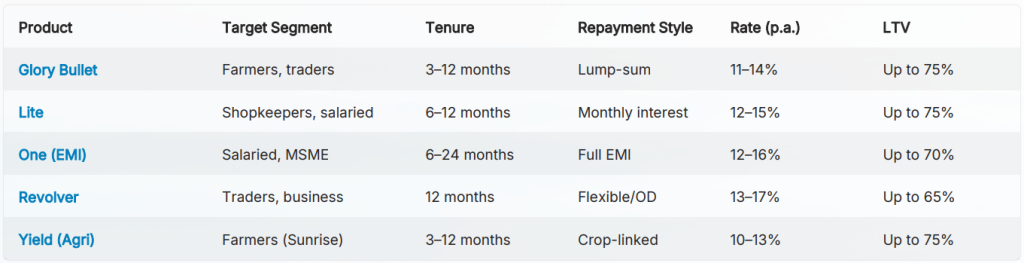Our comprehensive GLORY – Gold Loan Offers for Rural & Youth suite addresses diverse customer segments with customized solutions designed for maximum accessibility and value creation.